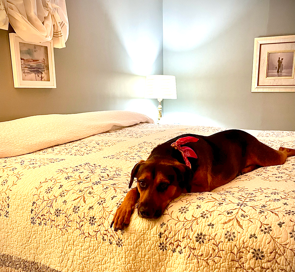 As Polly was preparing for her move to Iowa, her parents took a drive to Charles City to peek at her new home. Shortly after her parents visited the house, Polly received a call from Carl who informed her that her house was big enough for the three of them! It’s true, the house is big enough for three adults and a well-behaved sixty-pound rescue dog, Pico. Polly’s beloved sidekick. Insert “Spoiled Dog” here!